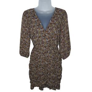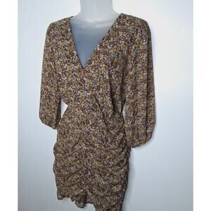 Storia Ditsy Floral Mini Dress Small Ruched Long Sleeve Fall Boho Romantic NEW