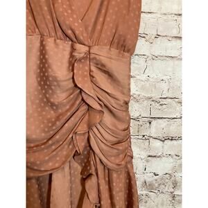 Storia Dress Womens Medium Salmon Pink Ruffle Ruched V Neck Polka Dot Flowy Zip