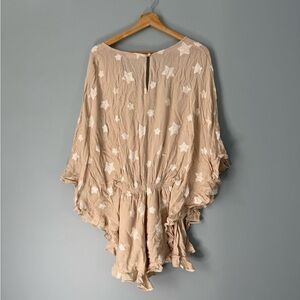 Beautiful Storia Embroidered Star Ruffle Batwing Sleeve Romper!