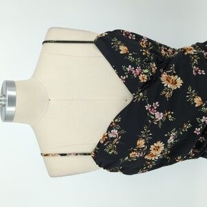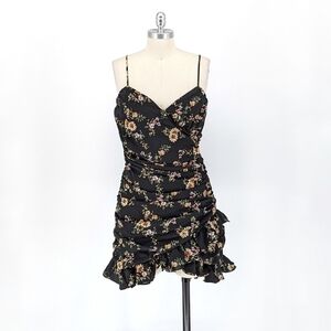 Storia Floral Mini Dress Black Pink L party cocktail ruffle prom wedding 80s 90s