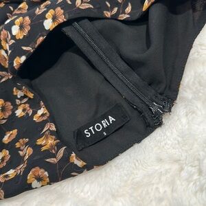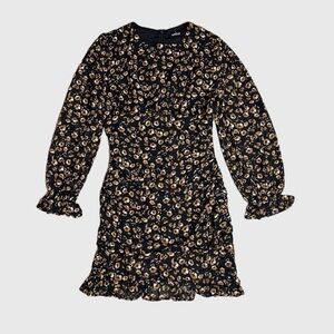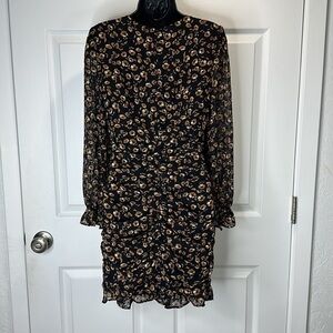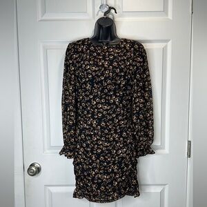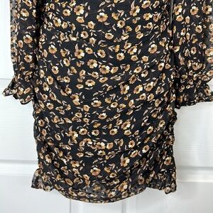 Storia Floral Print Long Sleeve Ruched Mini Dress Black Size S