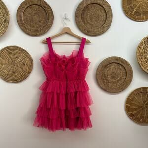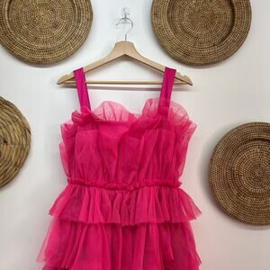 Storia Hot Pink Tulle Ruffle Mini Dress Medium Statement Cocktail Party Ruffle