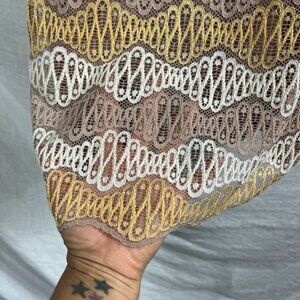 Storia lace slip dress in nude white and mustard neutrals, striped color block