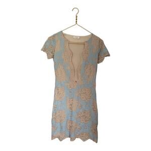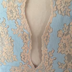 Storia Light Blue & Cream Lace Deep V Dress Size S
