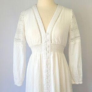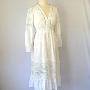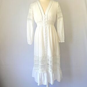 Storia Long Sleeve Boho Lace Dress White Size Small