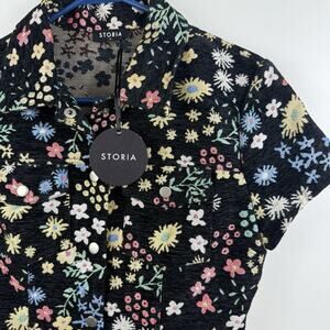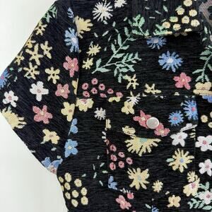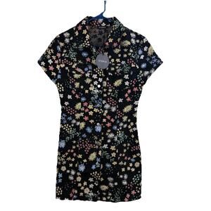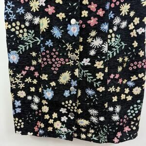 Storia New Black Floral Tapestry Mini Dress Medium Full Snap Dark Floral Retro
