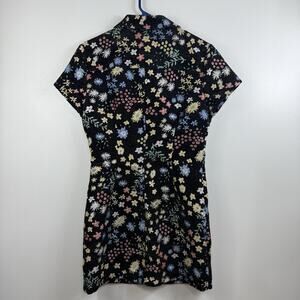 Storia New Black Floral Tapestry Mini Dress Medium Full Snap Dark Floral Retro