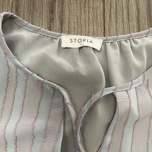 Storia Ruched Ruffle Pastel Stripe Dress Small
