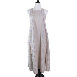Storia Size M Cotton A-Line Midi Dress Square Neck Stripes