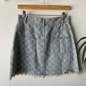 Storia Skirt Womens Large Blue White Windowpane Checkered Mini Denim Summer