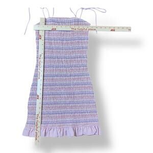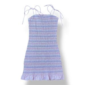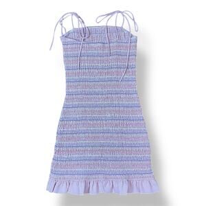 Storia Smocked Striped Gingham Ruffled Mini Dress Size M Preppy Flirty