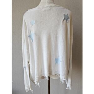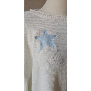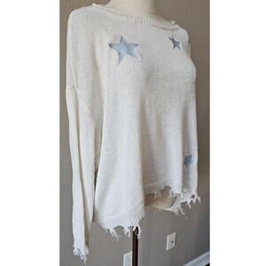 Storia Star Fringe Hem Boat Neck Sweater Emb Stars Oversized Womens Size M