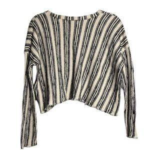 Storia Striped Black and White cropped top with raw hem size small oversized