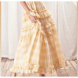 Storia Sunny Days Tiered Layered Plaid Ruffle Smocked Maxi‎ Dress NWT Sz M