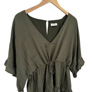 Storia Tiered Boho Babydoll Romper Ruffle Dolman Sleeves Oversized Womens Size S