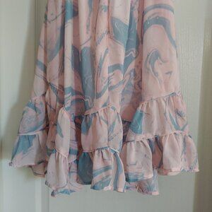 Storia Watercolor Feminine Girly Babydoll Ruffle Tiered Soft Girl Mini Dress L