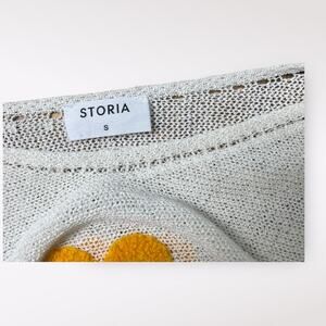 Storia White Orange Flowers Boho Preppy Open Knit Sweater, 3/4 sleeve