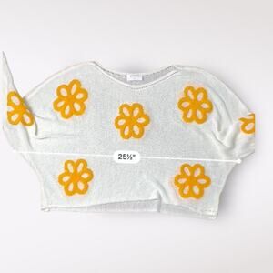 Storia White Orange Flowers Boho Preppy Open Knit Sweater Size S