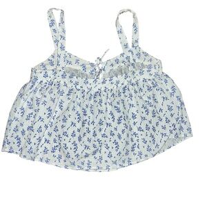 Storia White and Blue Floral Top size large