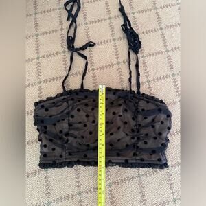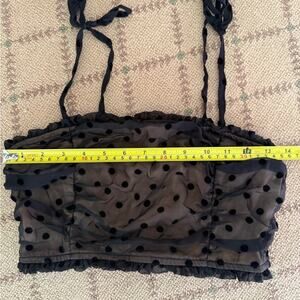 Storia cream underlay crop top w black tulle overlay w velvet polka dots S