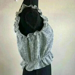 Storia green white floral smocked shirred ruffle cropped tank top women size medium