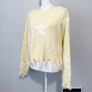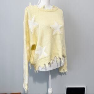 Storia yellow star frayed sweater distressed oversized low back knit size small