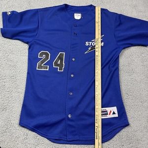 Storm Bowling Uniform Baseball Button Up Jersey Blue Majestic #24 Size S