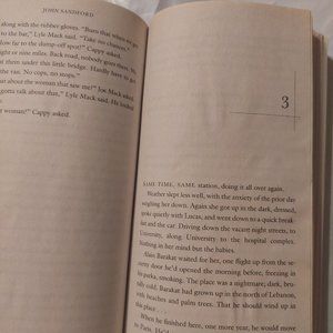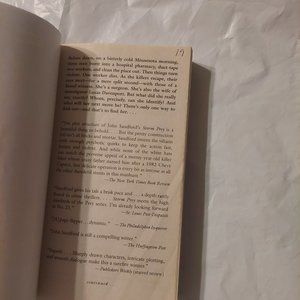 There's a storm brewing... — Very early, 4:45, on a bitterly cold Minnesota morning, three big men burst through the door of a hospital pharmacy, duct-tape the hands, feet, mouth, and eyes of two pharmacy workers, and clean the place out. But then things swiftly go bad, one of the workers dies, and the robbers hustle out to their truck -- and find themselves for just one second face-to-face with a blond woman in the garage: Weather Karkinnen, surgeon, wife of an investigator named Lucas Davenport.