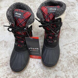 Storm by Cougar Boots Womens Size 6 Black Red Plaid Creek Waterproof Duck Boot