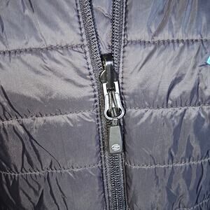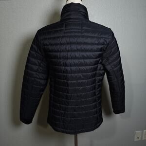 Stay warm and stylish with this Stormtech black quilted lightweight puffer jacket. Perfect for layering, this jacket features a sleek design and comfortable fit. Great for outdoor activities or casual wear. Get ready to turn heads and stay cozy!