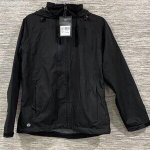 Built for downpours, priced for humans. NWT Stormtech shell with H2Xtreme waterproof/breathable fabric, adjustable hood with toggles, zip chest pocket, hand pockets, hook-and-loop cuffs, mesh lining, and a slight drop-tail hem. Color black. Note: there’s a subtle corporate logo on the shoulder (tone-on-tone); barely noticeable, discounted accordingly. Tag size visible in photos; clean, unused, and ready for rain, travel, and trail.