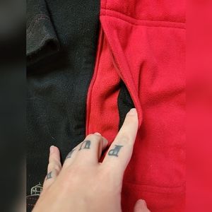 Stormtech fleece jacket. Red and black fleece jacket. High neck, no hood. Mesh lined. Two zipper pockets. Great basic jacket, perfect for hiking or camping! In great shape, except for some slight pilling around the inside of the neck (shown) - not noticeable when worn. Women's large
