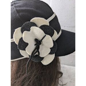 Stormy Kromer Women's Black Hat Fitted Size 7 1/8 Front Flower Daisy