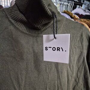 NWT Story Collective Flat Knit Turtleneck. Size XS. Hunter Color. No Flaws