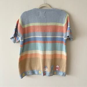 Story Knits Cardigan Sweater Striped Embroidered Details Beach Women size L