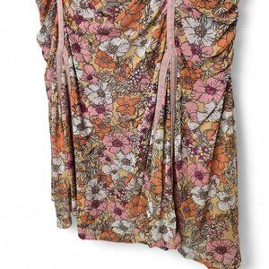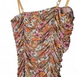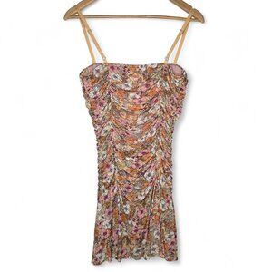 Story On Los Angeles Ruched Mini Dress Women's Sheer Floral Spaghetti Strap L