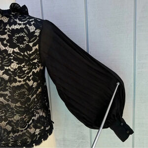 New with tag, Story On Pleated Sleeve Lace Blouse Top Sheer see-through, color black.