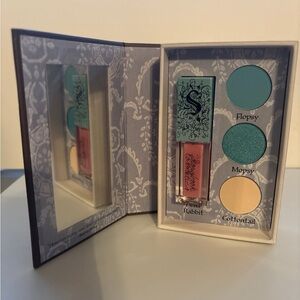 This set features three eyeshadow shades inspired by characters from Beatrix Potter's Peter Rabbit story: "Flopsy," "Mopsy," and "Cottontail".