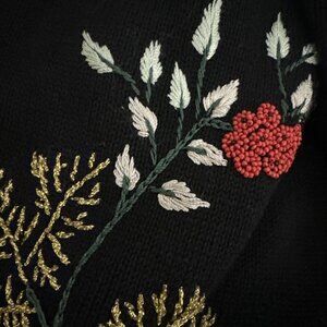 Storybook Knit Sweater CROCHET, APPLIQUE, PINE CONES Med