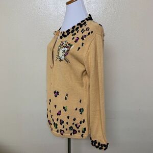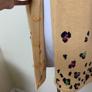 Storybook Knit Embellished Sequined Cheetah Cardigan Small Tan