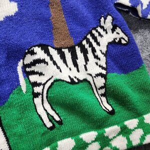 Storybook Knits 2XL Cardigan Sweater Teacher Zebra Giraffe Africa Fun
