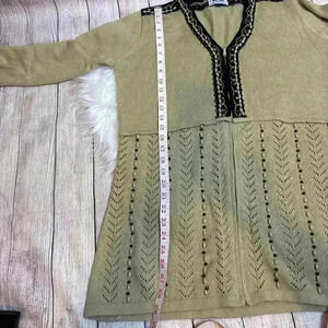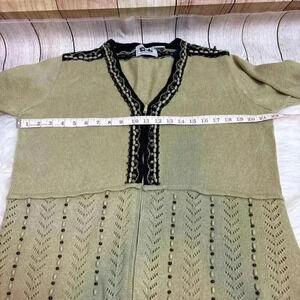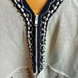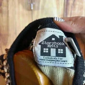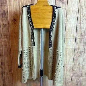 Storybook Knits Beaded Sweater Cardigan Black and Beige Size L