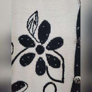 Storybook Knits Black And White floral print V-neck Cardigan Sweater Size M