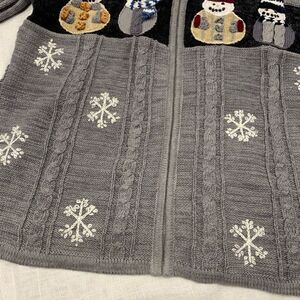 Storybook Knits Cable Sweater M Gray Snowman Full Zip Cardigan Snowflakes