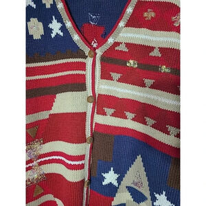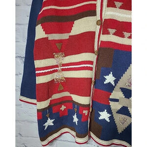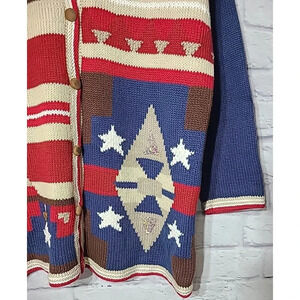 Storybook Knits Embellished Cardigan Sweater Women's 1X Blue Red Aztec Tribal
