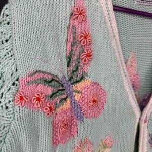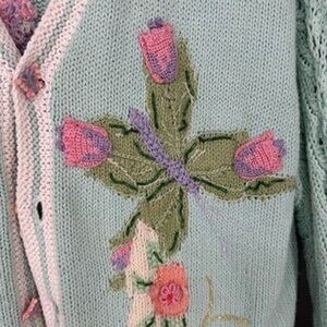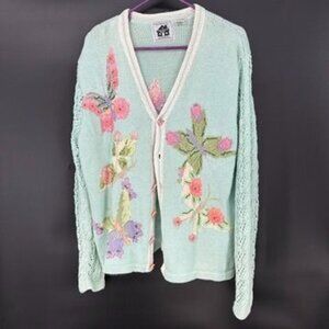 Storybook Knits Floral Cardigan Butterfly XL Large Bloosom In Flight Embroidery