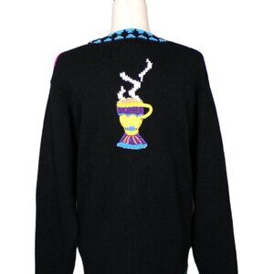 Details: Long sleeve; Button down; V- neck, Cardigan sweater, decorative coffee-themed buttons