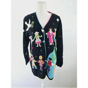 Storybook Knits Kids Children Around The World Peace On Earth Cardigan Sweater M