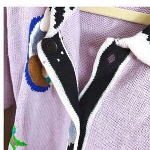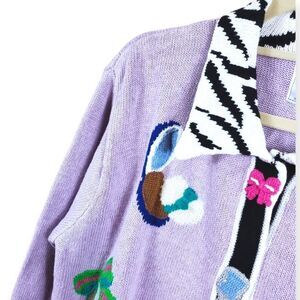 Storybook Knits Lilac Button Front Cardigan Lipstick Bow Nail Polish Makeup Sz M
