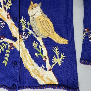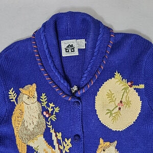 Storybook Knits M Purple Cardigan Sweater Owls in a Tree Embroidered Grannycore